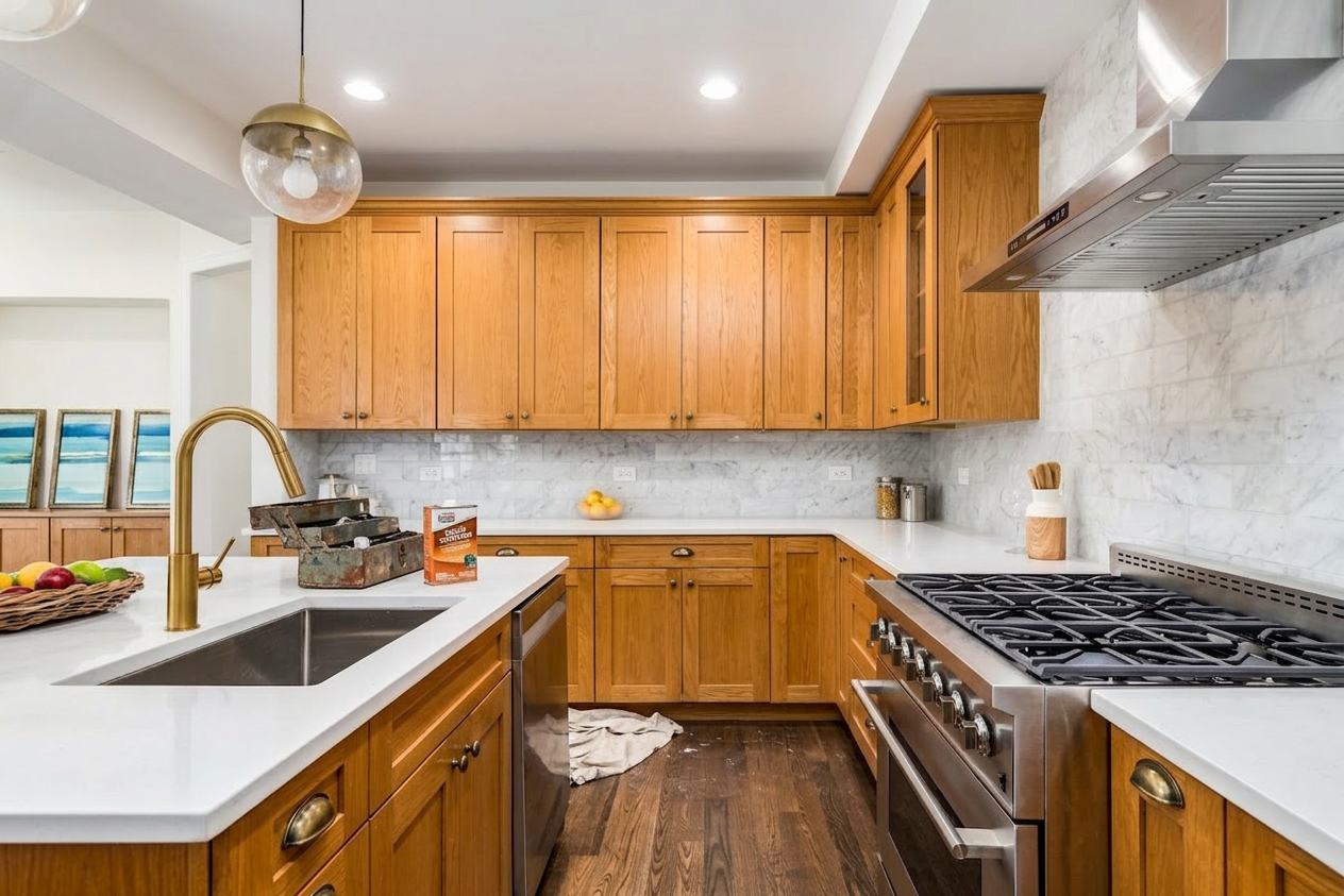 Cabinet refinishing is a highly affordable and budget-friendly alternative to traditional remodeling and costs a fraction of what it would be to reface or replace.